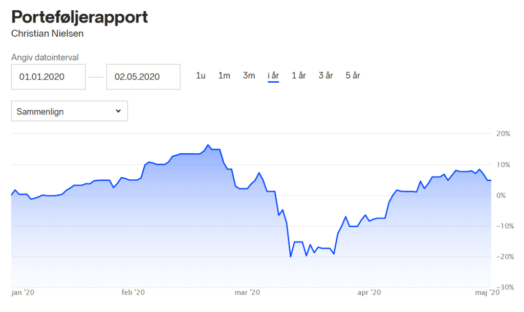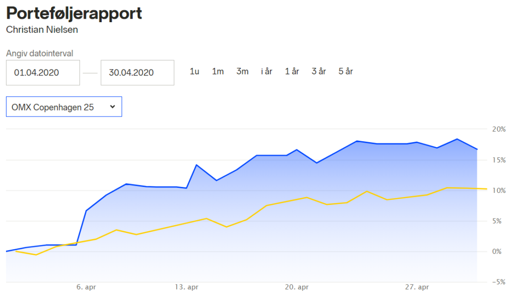 Min portefølje er placeret over C25-indekset, som er det største aktieindeks i Danmark, der har oplevet en stigning på cirka 10% i april.
